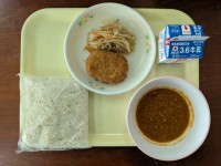 本日の給食は、ごはん、牛乳、ひじきの煮物、白菜のみそ汁、カシューナッツです。