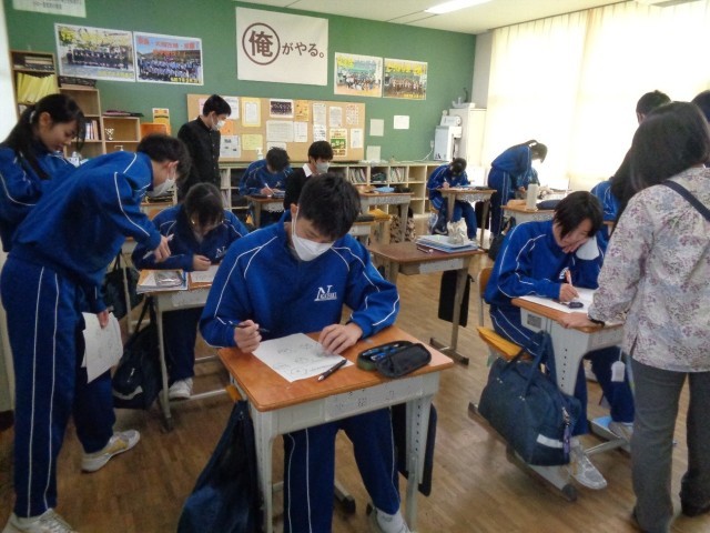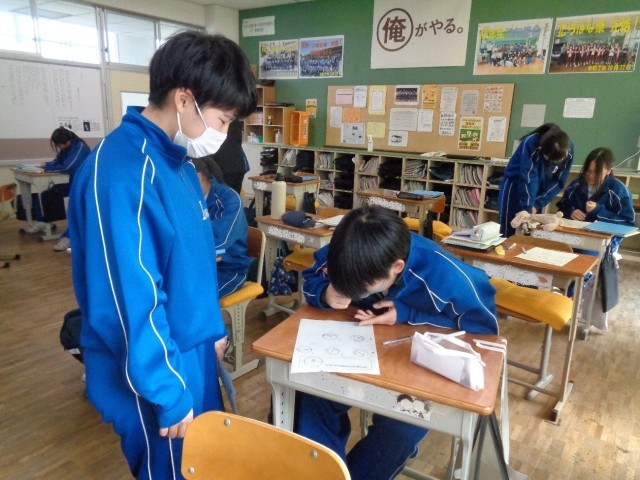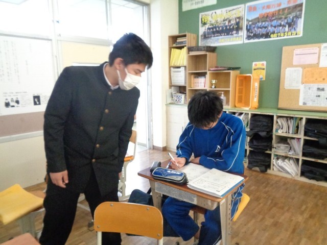 解き方を相談したり、分からない生徒に考え方をアドバイスしたりして、みんなで学習を進めています。