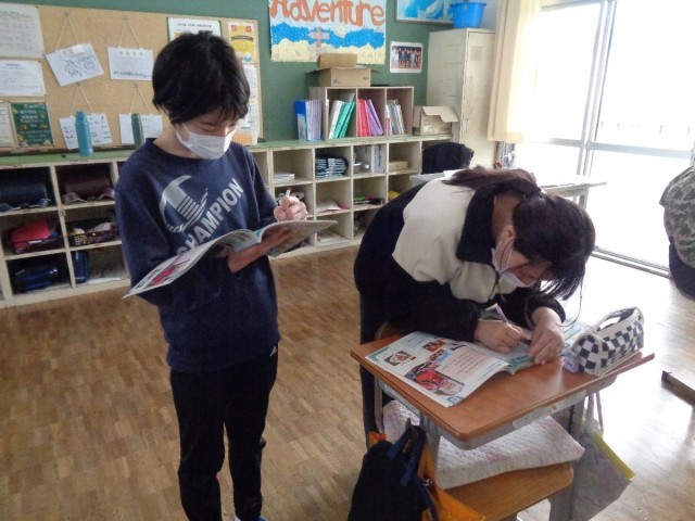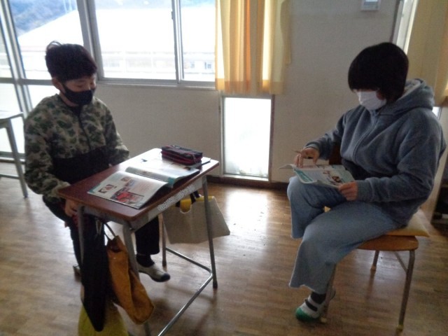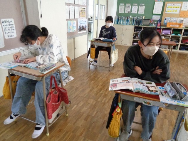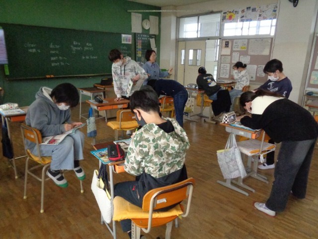 ペアで1文ずつ交代で日本語訳してみましたが、分からない単語があったり、習った表現のはずなのに意味を思い出せなかったりして、なかなか意味の通る日本語に訳すことができず苦労していました。