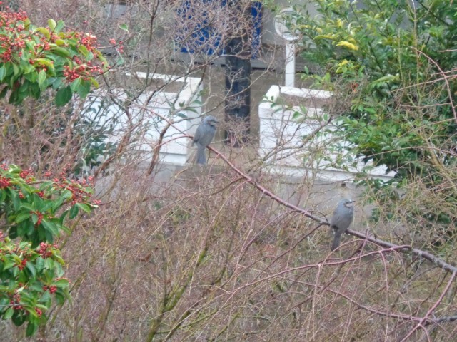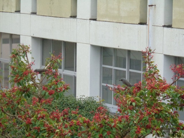2本あるクロガネモチ(のはず!)の木に集まり、実をついばんではピーピーと大きな声で鳴いていました。