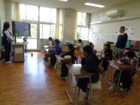 初志部集会の後、4年生は立志部の5年生と合同授業をしました。