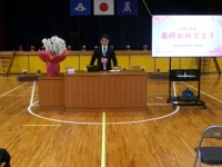代表の児童が、校長先生から教科書を受け取りました。