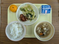 今日の給食は、ご飯、牛乳、煮込みおでん、いわしメンチカツ、ごま和えです。