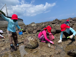 子供たちは、小魚はもちろん、カニにウニにナマコにタコを捕まえて、大盛り上がりです。