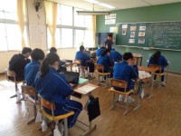 「If」を使った文章を作って、仲間や先生と会話をしています。「天気が晴れていたら」、「雨が降っていたら」という条件を設定し、天気に応じて自分は何をする予定でいるのか話を組み立てていました。