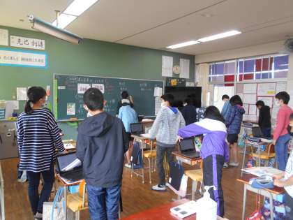 本の未来はどうなるかについて、電子書籍と紙の書籍の利用グラフを手掛かりにしたり、それぞれの良さ調べたことを基にしたりして、自らの考えを根拠をもって作り上げることができました。