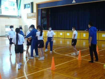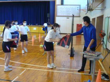 よさこいを踊る隊形を考えています。どのように並ぶのかが決まったようです。今日は、踊りで使う衣装も配られました。