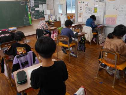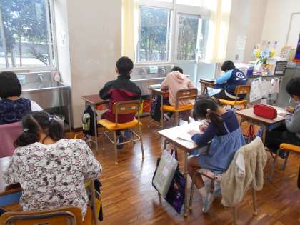漢字の確かめをしています。止め・はね・はらいにも気を付けて、家庭学習で練習した成果を発揮させていました。
