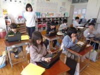 お手紙の物語で、誰が何を言っているのかみんなで確かめました。わかったところで、役割音読を始めました。