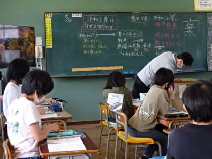 「平和主義はなぜ大切なのか」という学習課題を設定し、平和について考えました。子供たちからは、ウクライナのことについて話題が上がりました。