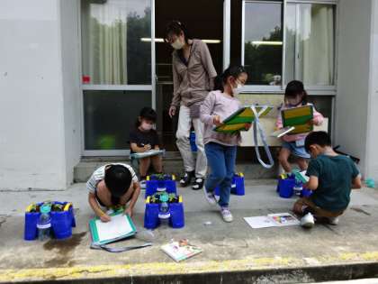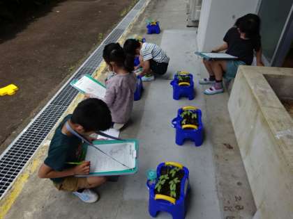 あさがおの観察をしました。双葉が出てきました。これからの生長が楽しみです。