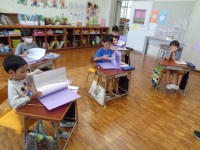 ひき算の学習が一通り終わり、「ひき算の絵本」を作成しました。たし算での経験があるので、どの子もぐんぐん取り組んでいました。