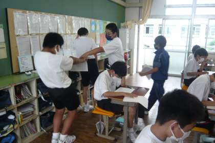 一人一人が書き上げた作文を交換して読み合っています。「作文批評カード」に、その作文の表現のよさや感じたことをまとめ、クラス全員の作品を読み進めています。