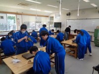 2次方程式の学習を行っています。集中して問題に取り組んだりじっくり先生の話を聞いたりしています。