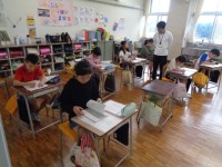 昨日の算数では、練習問題をやりました。問題をじっくりと読み、一人一人が真剣に取り組んでいました。