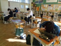 「『文殊の知恵』の時代」を、提示された条件に沿って書き換えています。400字の字数制限がある中、捉えた文章全体の構成を組み立てながらクロームブックに書き込んでいます。この後、でき上がった文章は仲間と読み合う予定です。
