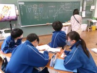 総まとめの問題を行っています。「分かる問題から取りかかる」「時間の配分を考える」など、テストに臨むための基本的な事柄も大切にして取り組んでいます。