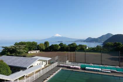 今日は快晴です。 富士山の雪化粧が美しいです。