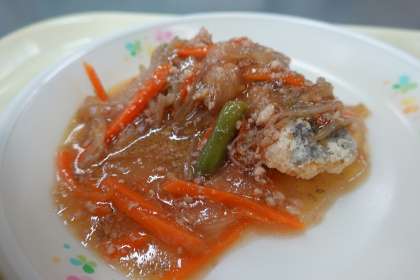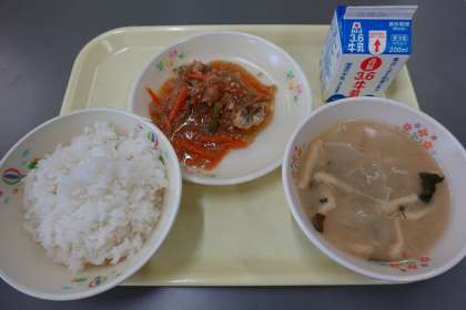 ご飯、牛乳、ほきの野菜あんかけ、大根とえのきたけの味噌汁