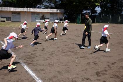 ネコとネズミチームに分かれて、おっかけっこを行っています。