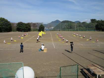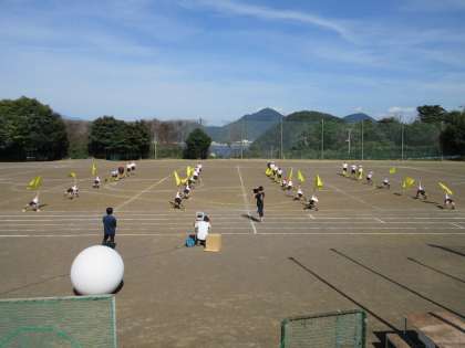 5・6年生が合同体育で 体育祭の練習をしていました。