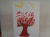 4年生は「藤の花で鬼を追い払う」と言って紙テープに花を貼り付けていました。