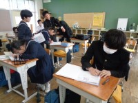 その黒板を見ながら、9年生の生徒たちは修学旅行の振り返りをしていました。