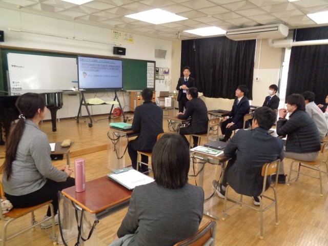 放課後、授業を参観した先生たちが集まり、振り返りをしました。