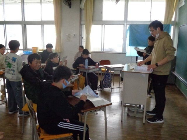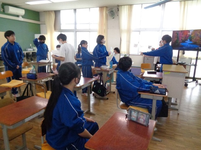 放課後、授業を参観した先生たちが集まり、振り返りをしました。