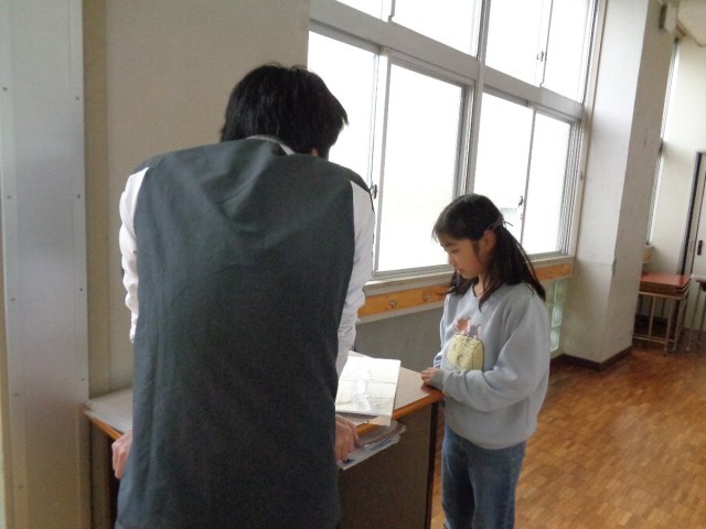 教室にいた子供たちは、放送が入ると素早く反応し、机の下にもぐっていました。