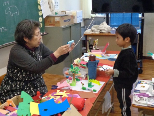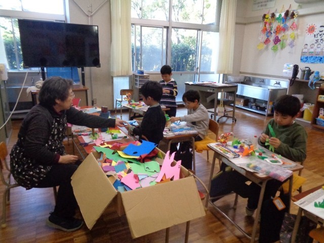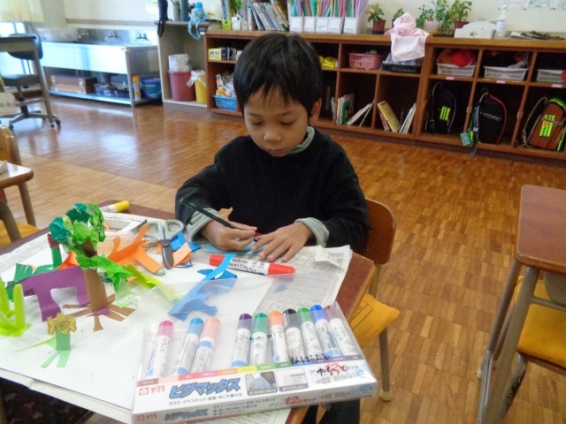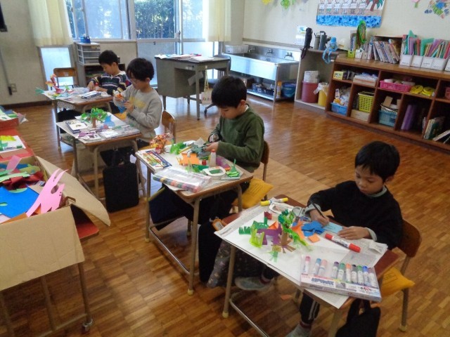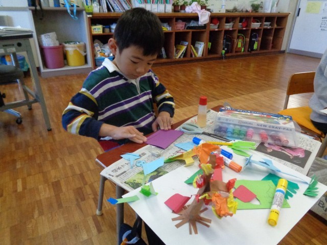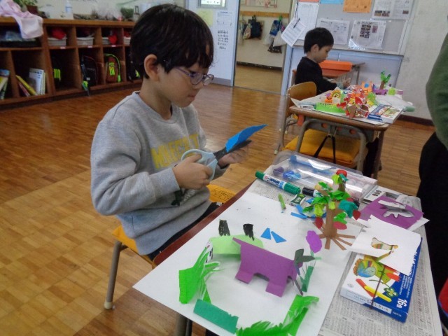 動物が何種類かできあがり、画用紙の上がだんだんにぎやかになってきました。