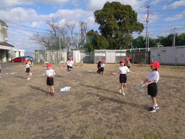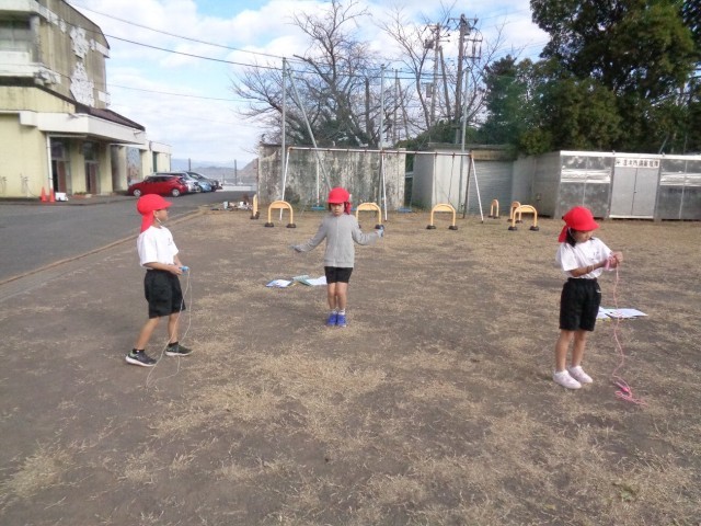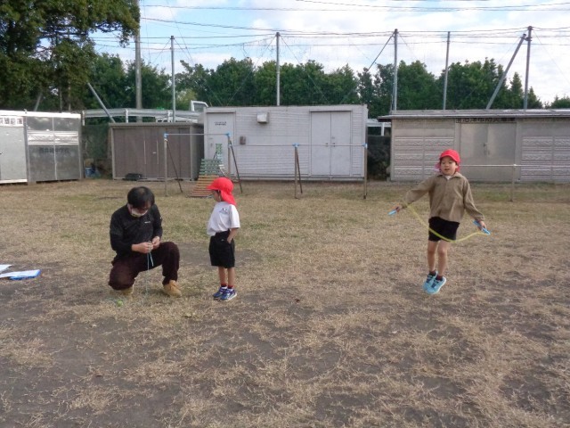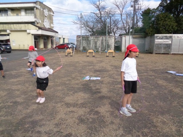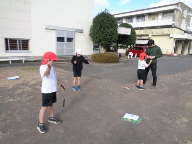 1・2年生合同の授業なので、1年生は2年生に跳び方を見せてもらうことができます。
