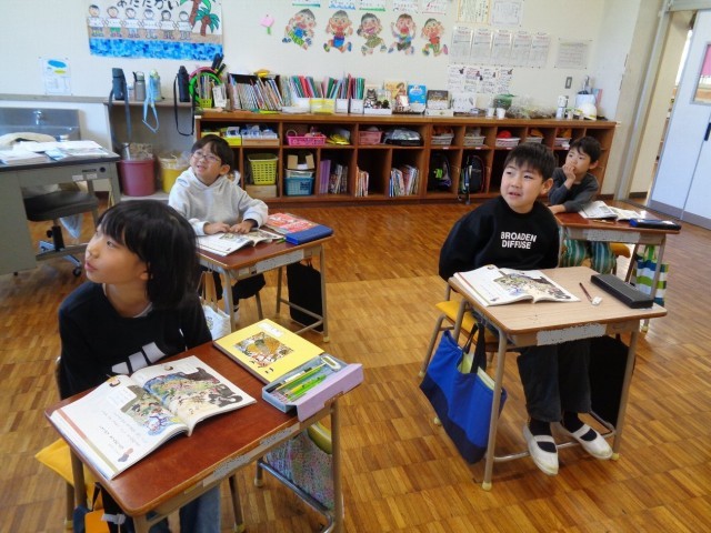 次の時間に、みんなで図書館に行って昔話を読むようです。
