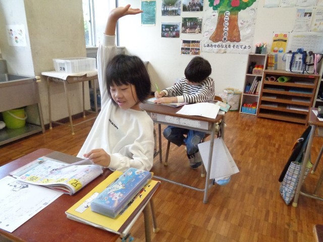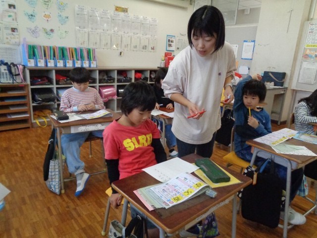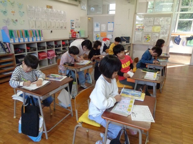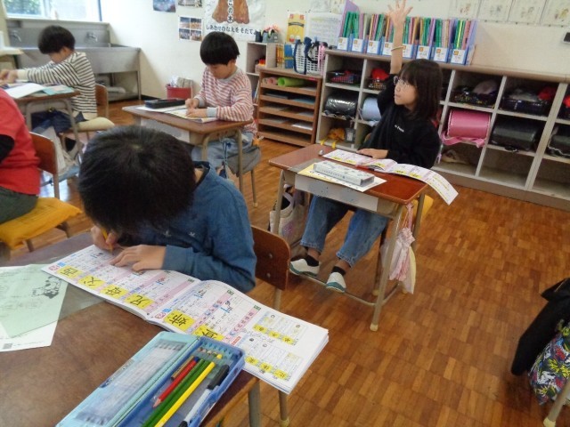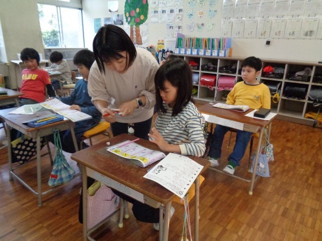 ドリルに書けたら手を挙げて、先生のチェックを受けました。