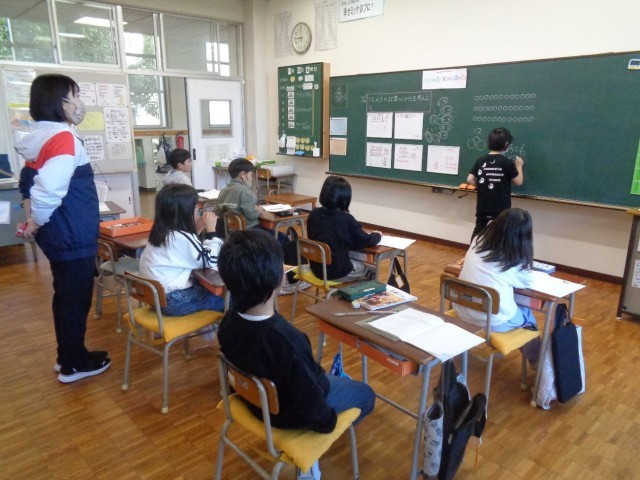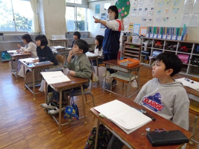 ドリルに書けたら手を挙げて、先生のチェックを受けました。