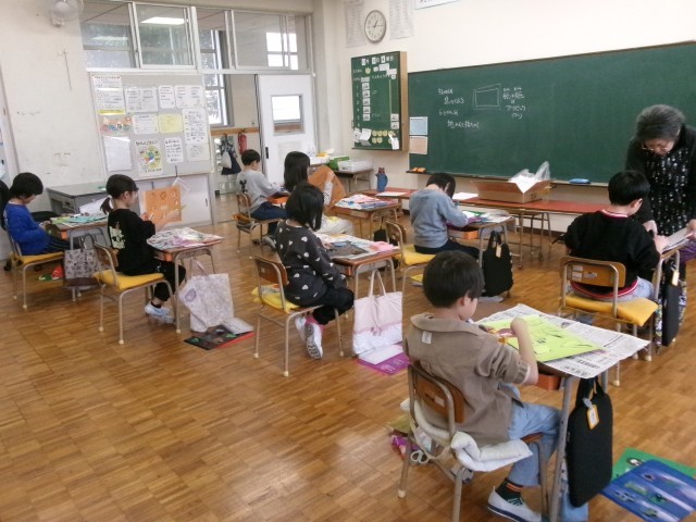 ドリルに書けたら手を挙げて、先生のチェックを受けました。