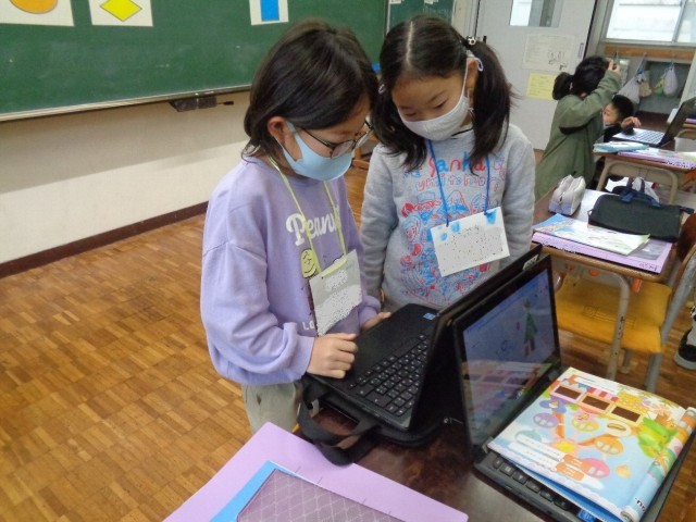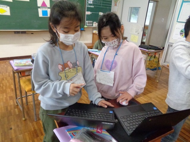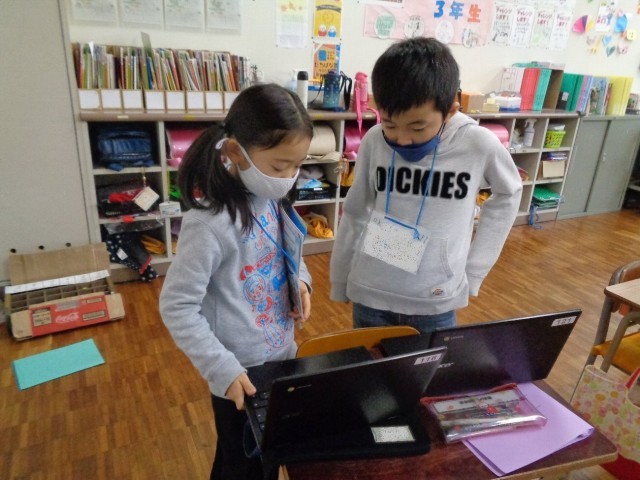 動画で避難するときの姿勢を学んだり、Chromebookで学校の中の危険な所探しをしたりしました。