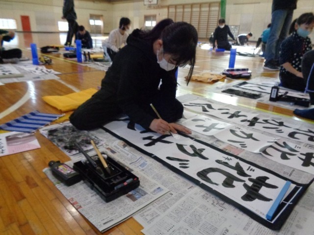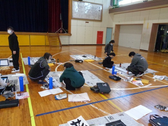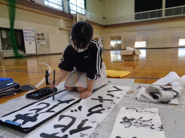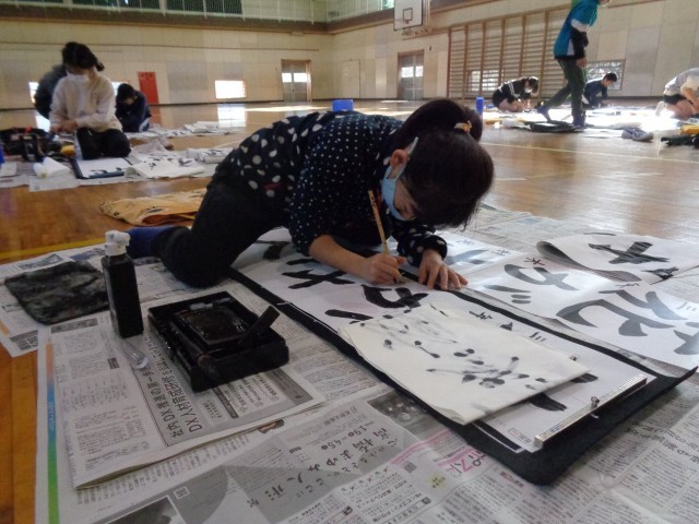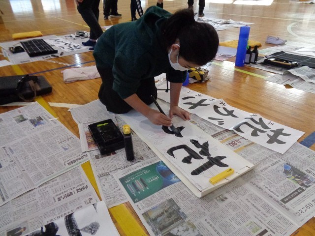 紙の大きさも筆の太さもいつもと違うので、感覚をつかむまでは文字の大きさのバランスをとるのが難しそうです。