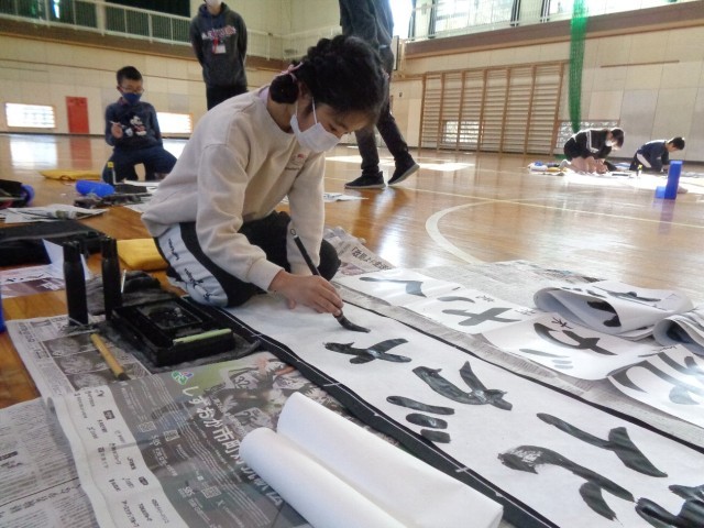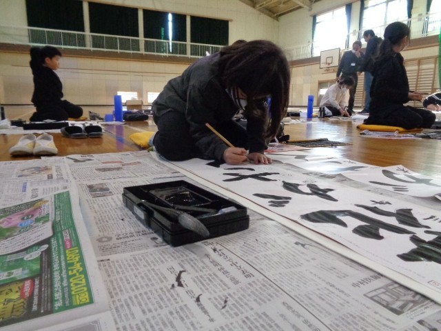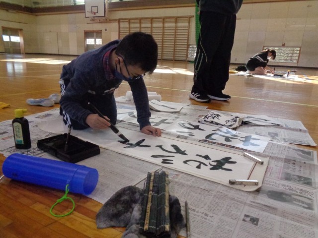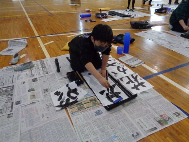 3年生は、初めての毛筆での書き初めです。