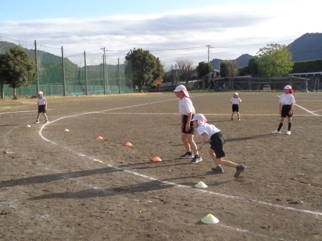 扱い慣れない小さいボールなので、守備も大変そうです。