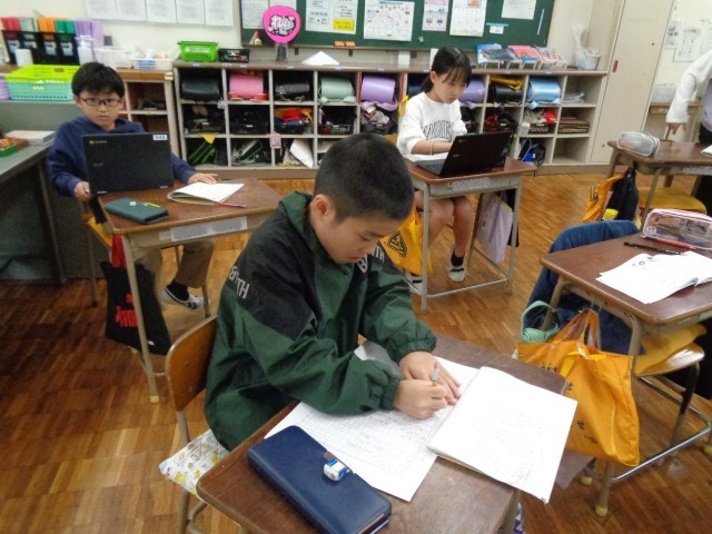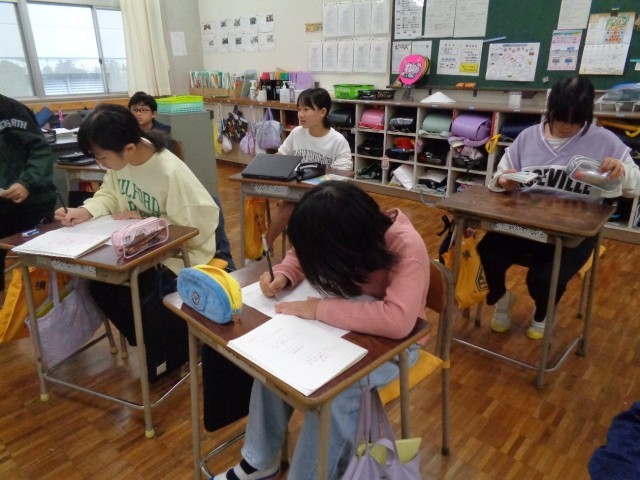 まずはノートに書き、先生のチェックを受けて合格した人から原稿用紙に書いていきました。