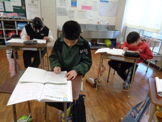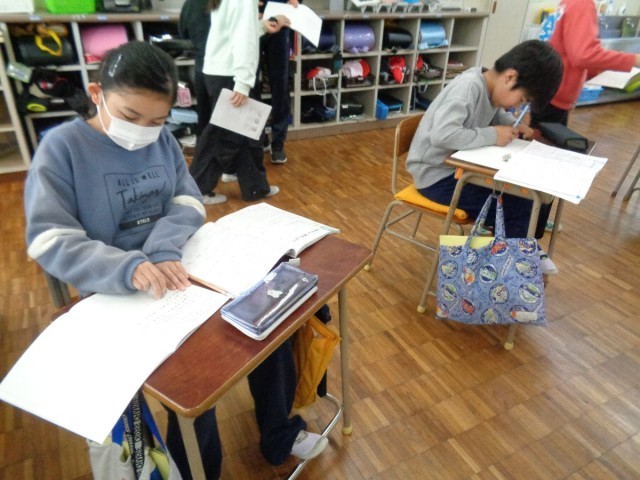 子供たちは行き詰まると、答えになる漢字を探してしきりに教室内をキョロキョロ見回していました。