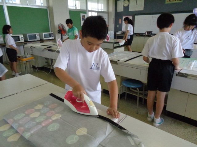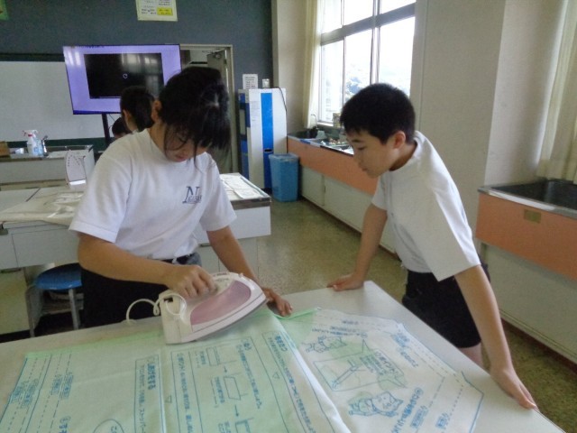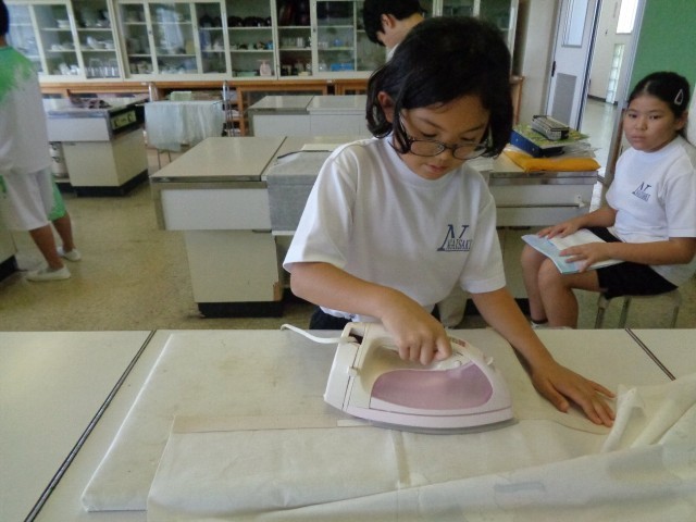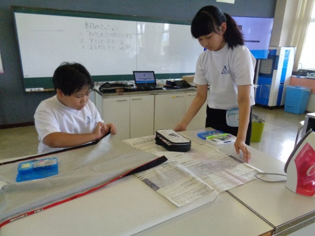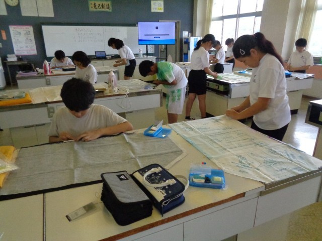 ミシンの使い方を覚えて練習を終え、エプロン作りに入りました。