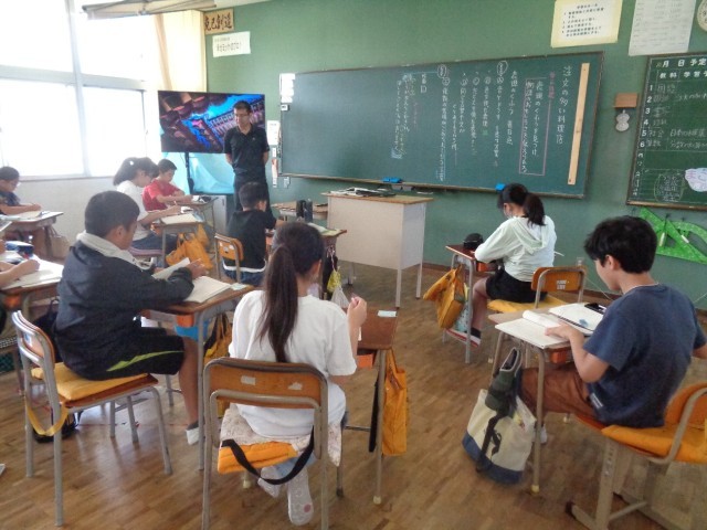 平沢マリンセンターの朝倉様にお越しいただき、海の豊かさについてグループワークで考えました。