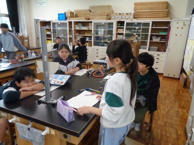 食塩やミョウバンの水溶液から、結晶を取り出す準備をしていました。