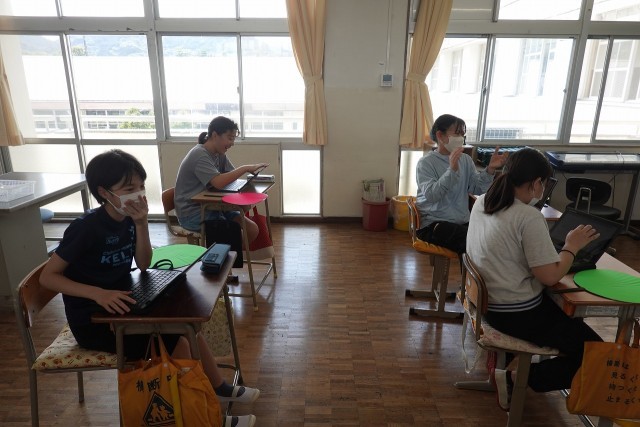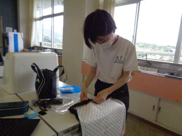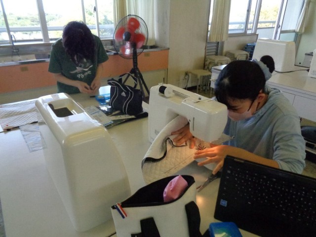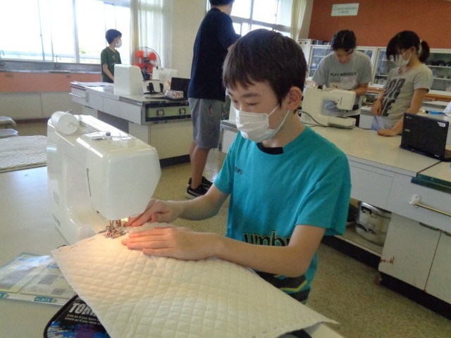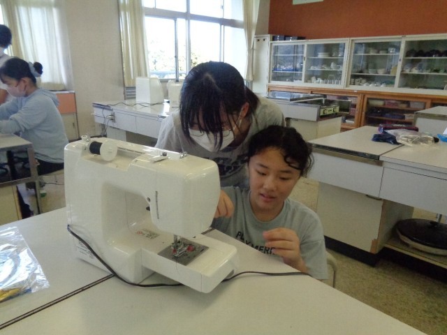 1年ぶりのミシンで使い方を思い出しながら取り組んでいますが、苦戦している子が多いです。