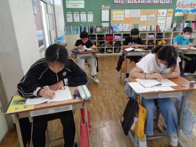 硬筆で清書シートを書いた後、ワークで葉書の書き方を練習しました。