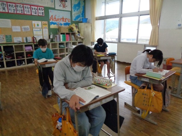五・七・五の17音で作られる定型詩で、季語が入ることを学んだ後、教科書にある6年生が作った俳句を音読してみました。