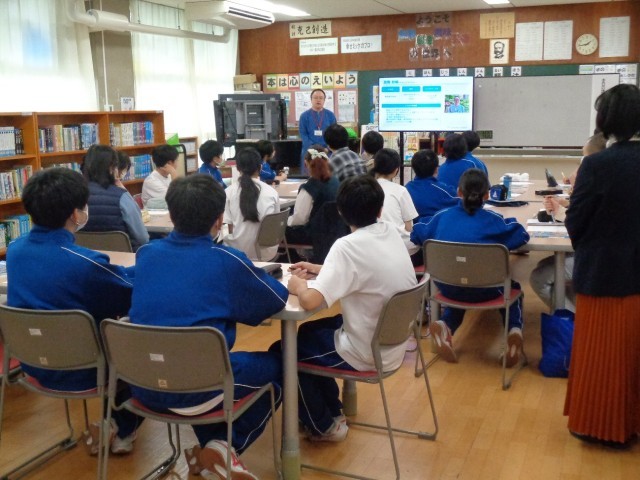 一緒に歌ったり、9年生が歌詞を分析する様子や工夫して歌う様子を7年生が参観したりしました。