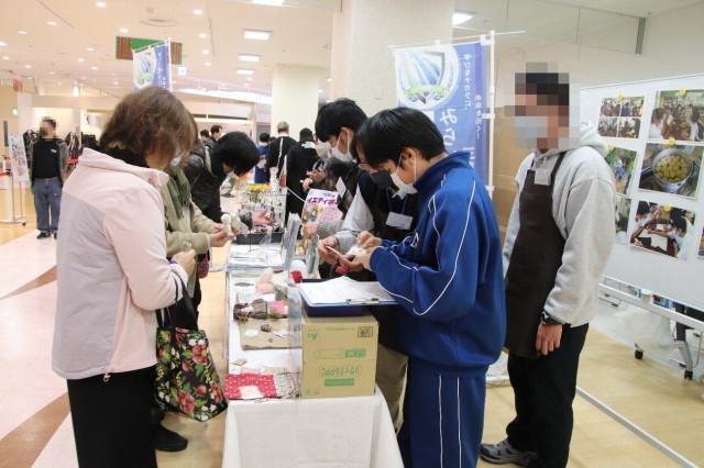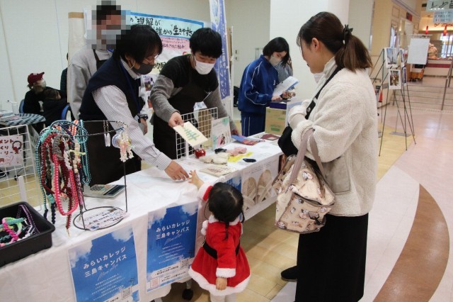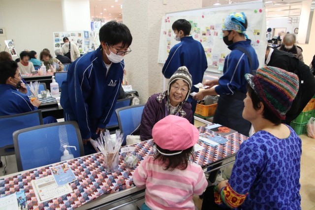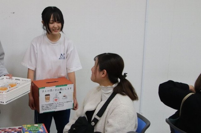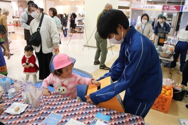 西浦みかんの詰め放題や、みかんジュースの提供、フェアトレード製品の販売、カフェコーナーのおもてなし、会場周辺でのビラ配りなどを、本校の生徒たちと協力して行ってくださいました。
